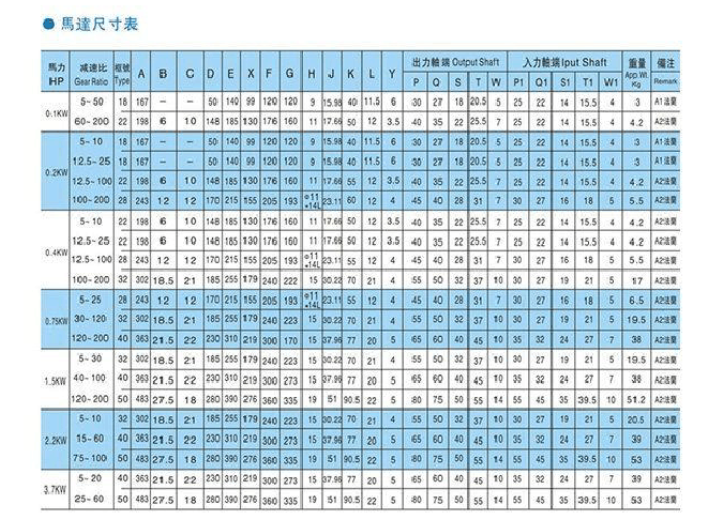 平行軸系列齒輪箱的公稱輸入功率P。按載荷平穩,每天工作時間小于或等于10h,每小時啟動不超過5次。允許啟動轉矩為工作轉矩的2倍。單向運轉,單對齒輪的接觸強度安全系數約為1,失效概率小于或等于1%等條件計算確定的,齒輪箱雙向運轉時。需視情況將PA乘上0.8—1.0的系數,當反向載荷大,換向頻繁、選用的可靠度系數K。較低時,系數取較小值,反之取較大值,所選齒輪箱的額定功率要滿足:P(:二P:KAK;K。≤PA式中:Pc—計算功率,P2—工作機功率,KA—使用系數。KS—啟動系數KR—可靠度系數。