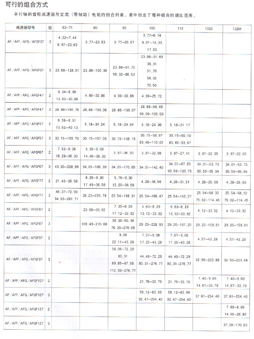 AF系列平行軸斜齒輪減速電動機是參照JB/ T6447-92標準設計、制造,并符合1EC標準的新產品。它由拖動電動機與齒輪減速裝置藕合而成,具有結構緊湊,體積小。重量輕、噪聲低、振動小,效率高等特點,是理想的低速動力源。廣泛應用于冶金、礦山、輕工、化工、鋼鐵.水泥、紡織、印染、制糖.食品、橡膠、醫藥、包裝、建筑、起重運輸、農機等行業、并可供引進設備的配套與維修。