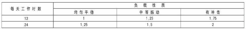 用戶可根據實際工作制和負載性質參照服役系數表,計算后確定減速電動機的功率與型號。