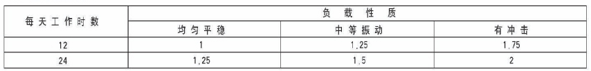 用戶可根據(jù)實(shí)際工作制和負(fù)載性質(zhì)參照服役系數(shù)表,計(jì)算后確定減速電動(dòng)機(jī)的功率與型號(hào)。